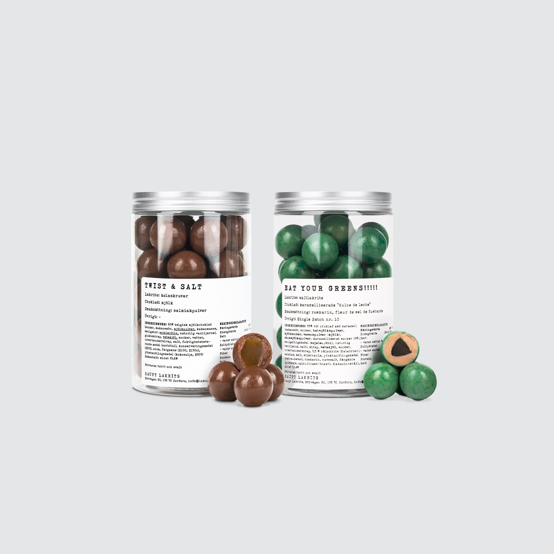 Twist & Salt (250 g) – a caramel-sweet centre coated in Belgian milk chocolate flavoured with salmiak powder.